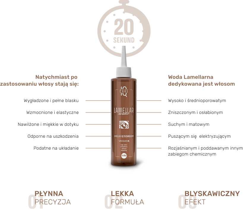 Na tradycyjne zabiegi pielęgnacyjne należy poświęcić od kilkunastu do kilkudziesięciu minut. Z wodą lamelarną czas skracamy do 20 sekund! Wydaje się niemożliwe, ale efekty mówią wszystko!